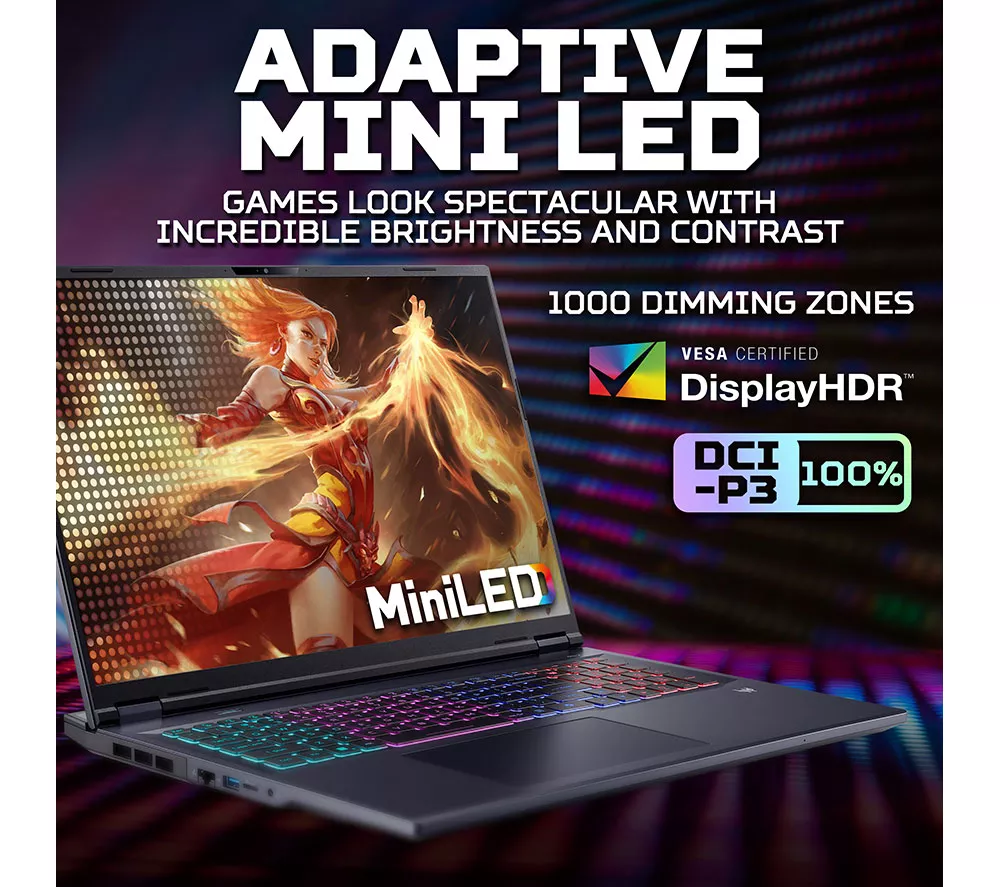Technical specifications for ACER Predator Helios Neo 18 AI 18″ Gaming Laptop – Intel® Core™ Ultra 9, RTX 5070 Ti, 2 TB SSD