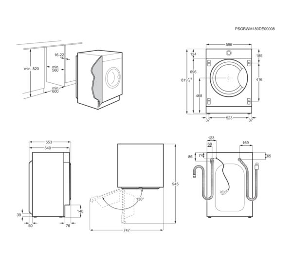 Technical specifications for AEG L7WC8632BI Integrated 8 kg Washer Dryer