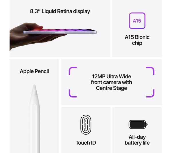 Technical specifications for APPLE 8.3″ iPad mini (2021) – 256 GB, Purple