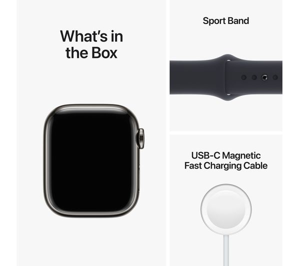 APPLE Watch Series 8 Cellular – Graphite with Midnight Sports Band, 41 mm