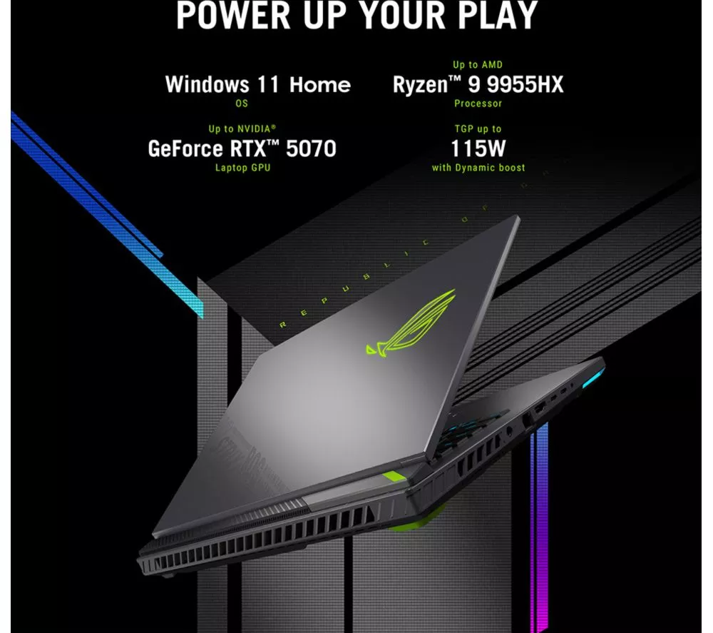 Technical specifications for ASUS ROG Strix G18 18″ Gaming Laptop – AMD Ryzen 9, RTX 5070, 1 TB SSD