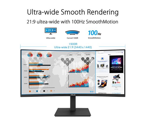 ASUS VA34VCPSN Wide Quad HD 34″ Curved VA LED Monitor – Black