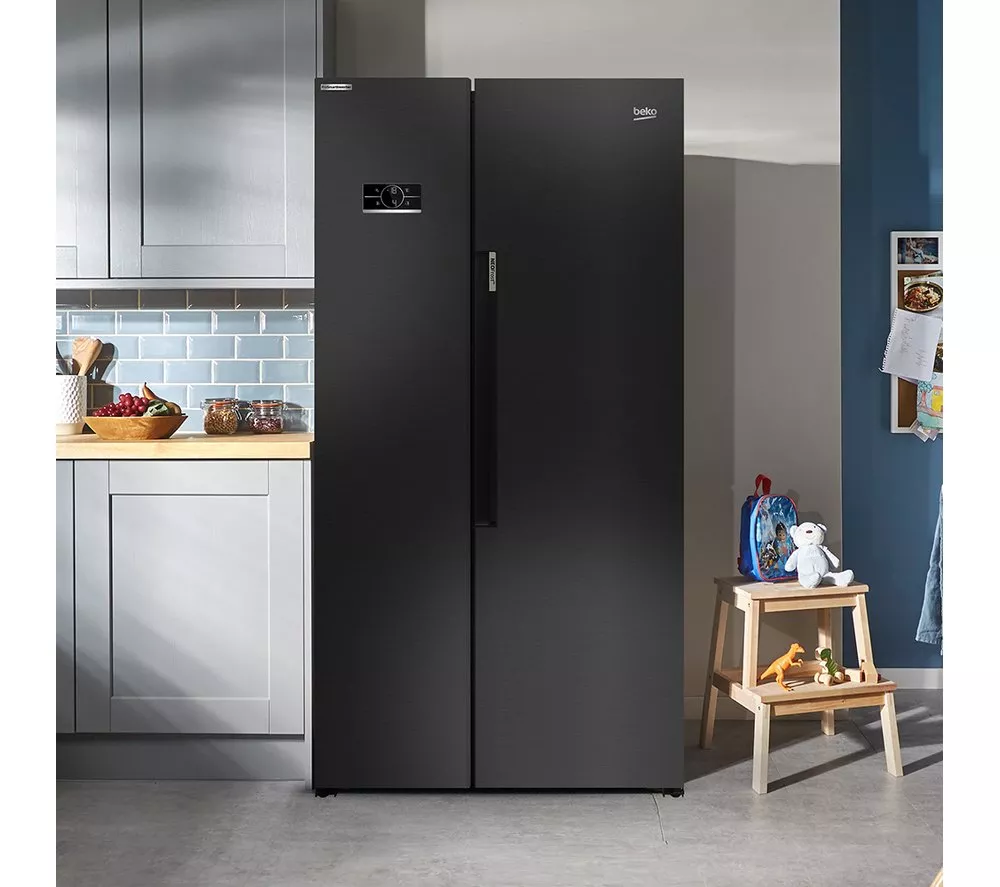 BEKO HarvestFresh ASL1442VPZ American-Style Fridge Freezer – Black Steel