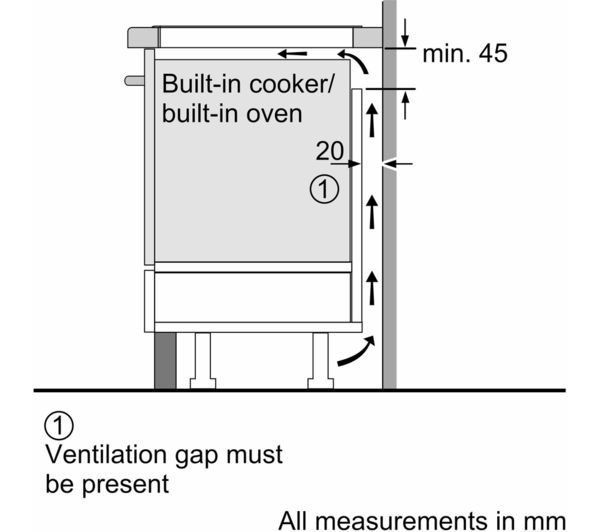 Minimum distance required / Minimum clearance above hob