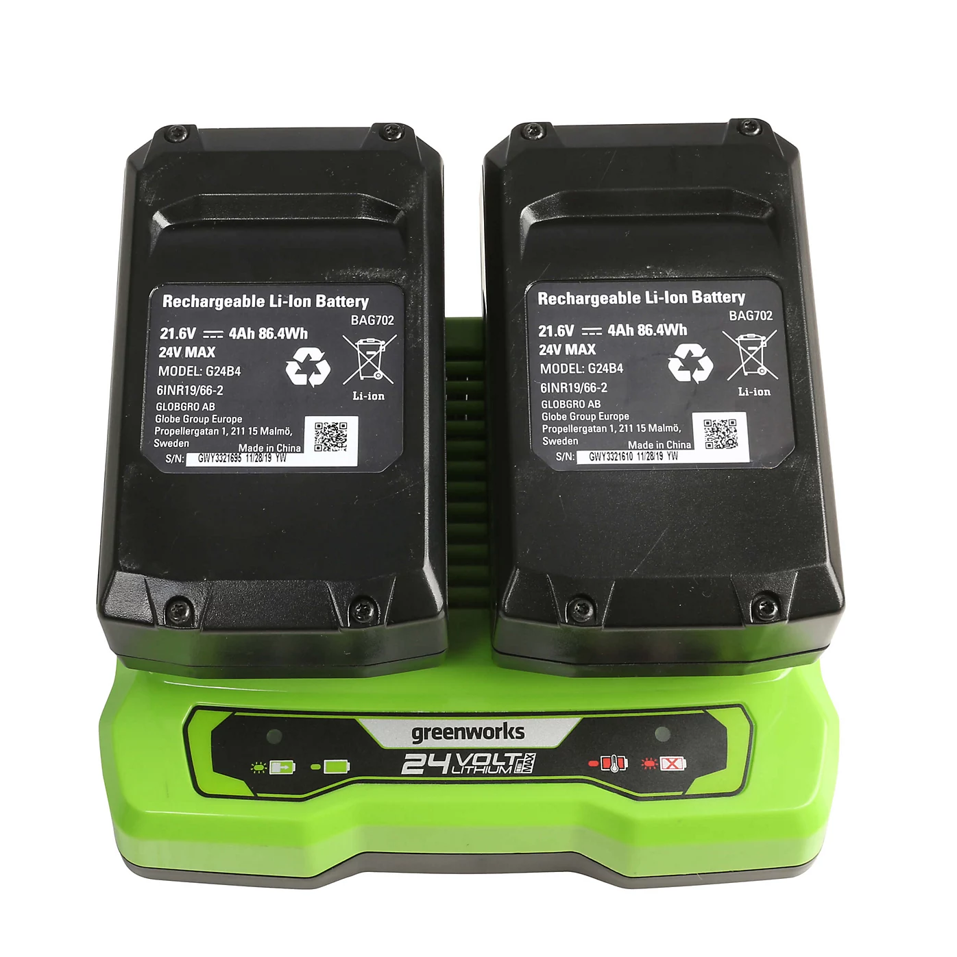 – Batteries compatible with Greenworks 24 V range