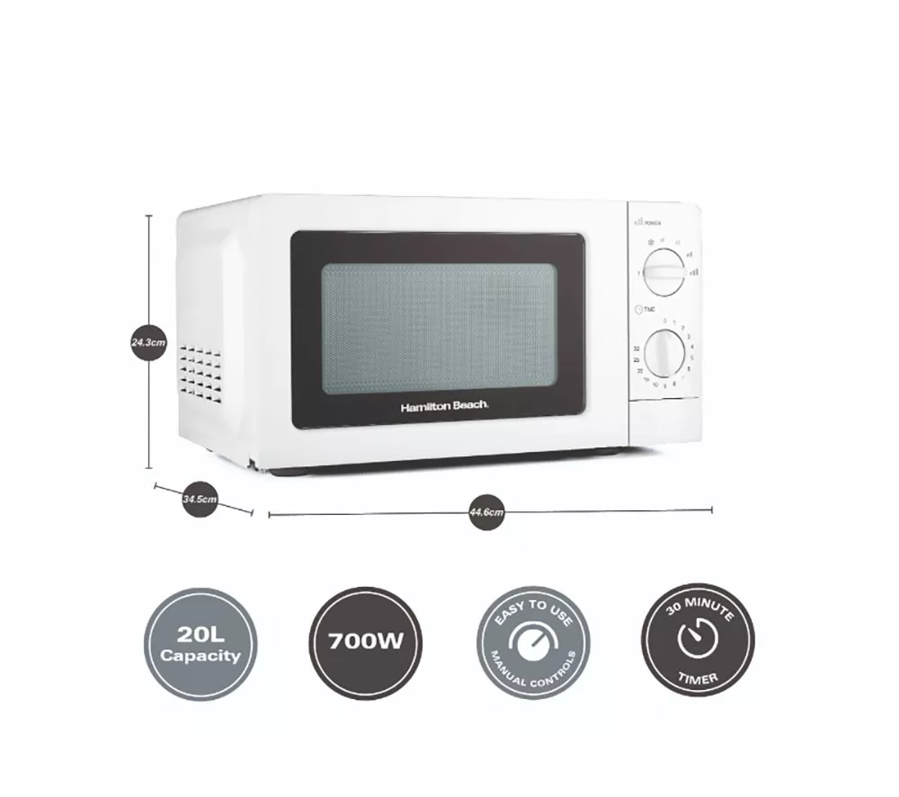Technical specifications for HAMILTON BEACH Ella Compact Solo Microwave, Electric Kettle, Filter Coffee Machine & 2-Slice Toaster Set – White