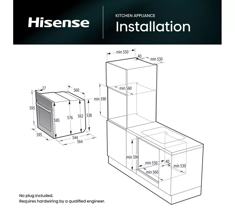 Technical specifications for HISENSE Hi8 BlackLine BAS6PH8BUKWF Electric Pyrolytic Steam Smart Oven – Jet Black