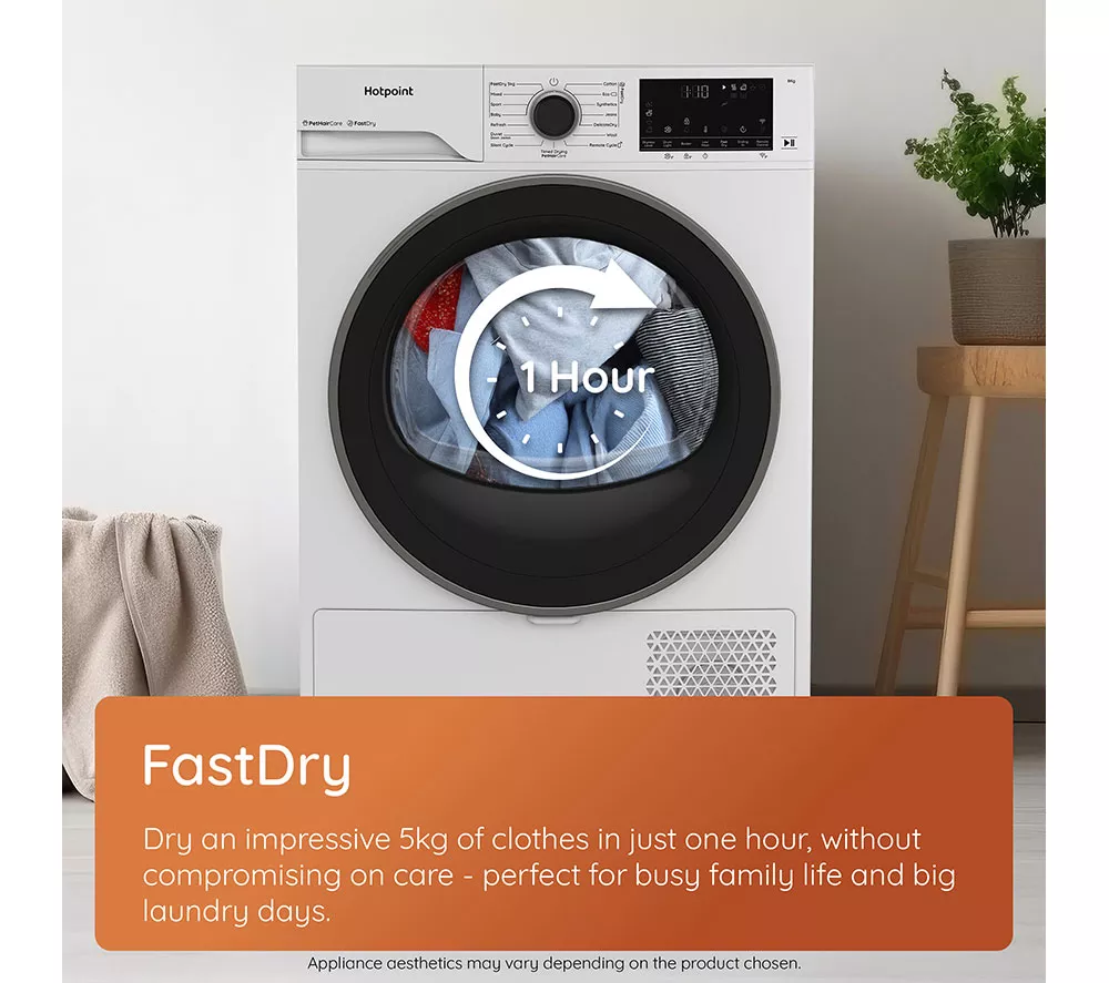 Hotpoint FabricCare C HD 94M BBS UK WiFi-enabled 9 kg Heat Pump Tumble Dryer – Black