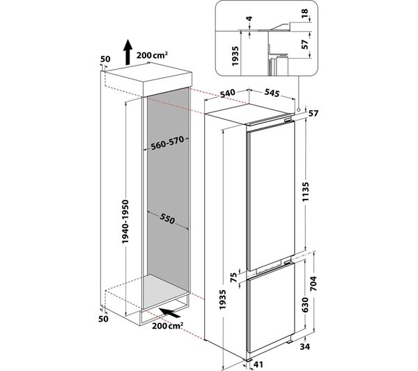 Technical specifications for HOTPOINT HTC20 T321 Integrated 70/30 Fridge Freezer – Sliding Hinge