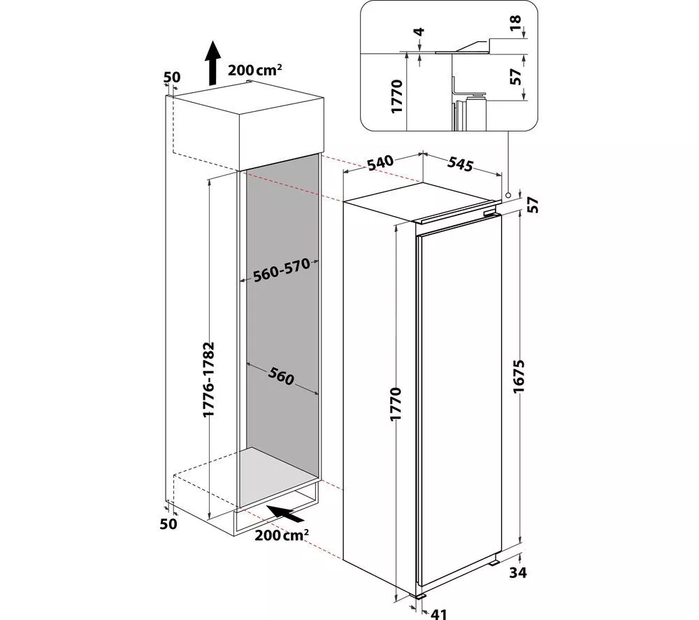 Technical specifications for HOTPOINT HTSD18A011A1 Integrated Tall Fridge – Sliding Hinge
