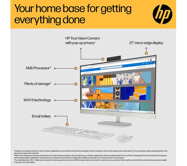 HP 27-cr0020na 27″ All-in-One PC – AMD Ryzen 7, 512 GB SSD, White
