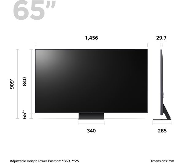 – TV with stand: 869 x 1456 x 285 mm (H x W x D)