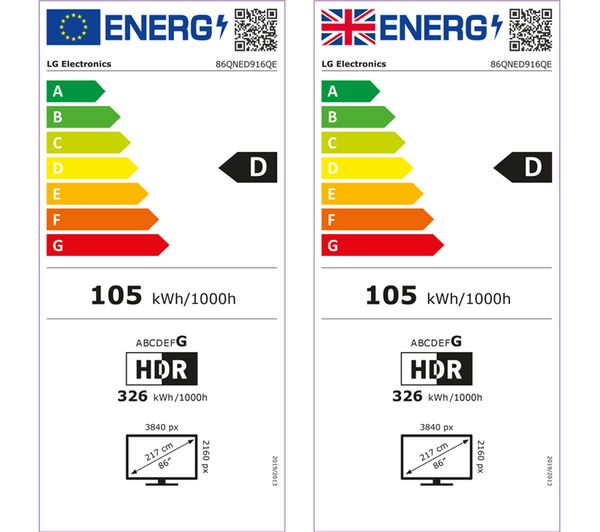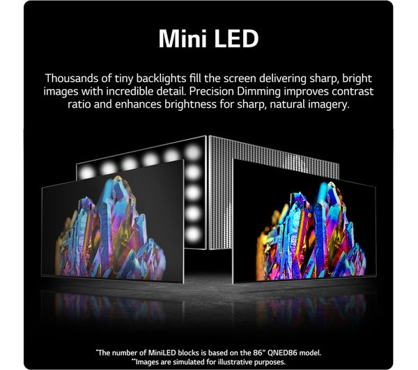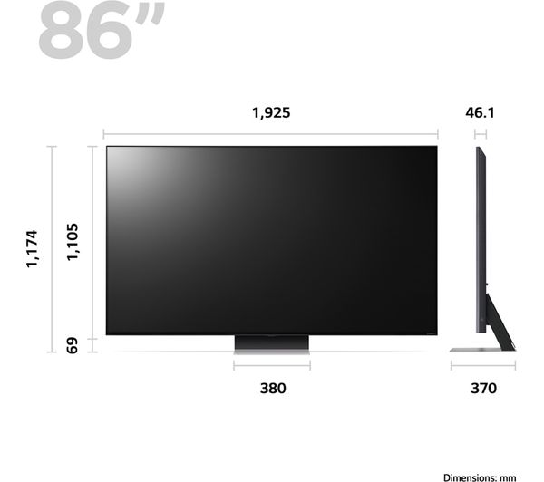 Technical specifications for LG 86QNED916QE 86″ Smart 4K Ultra HD HDR QNED TV with Google Assistant & Amazon Alexa