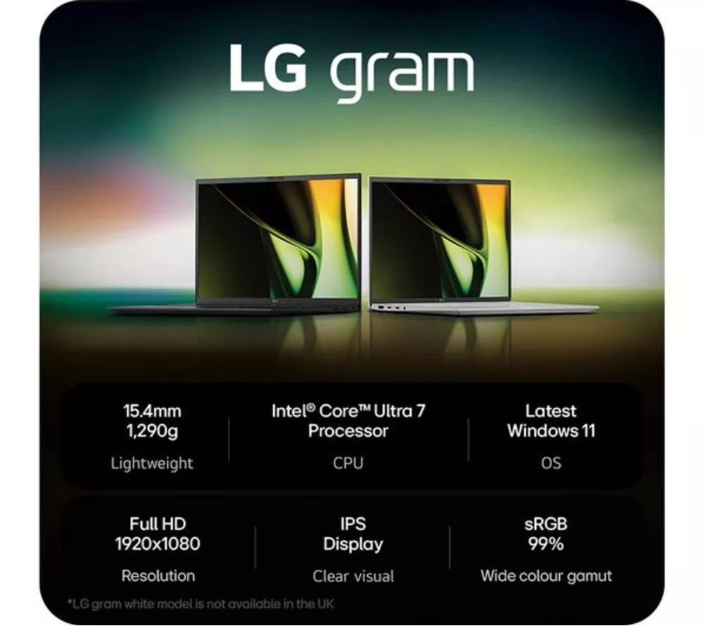 Technical specifications for LG gram 15 15Z90S-G.AA78A1 15″ Refurbished Laptop – Intel® Core™ Ultra 7, 1 TB SSD, Black (Very Good Condition)