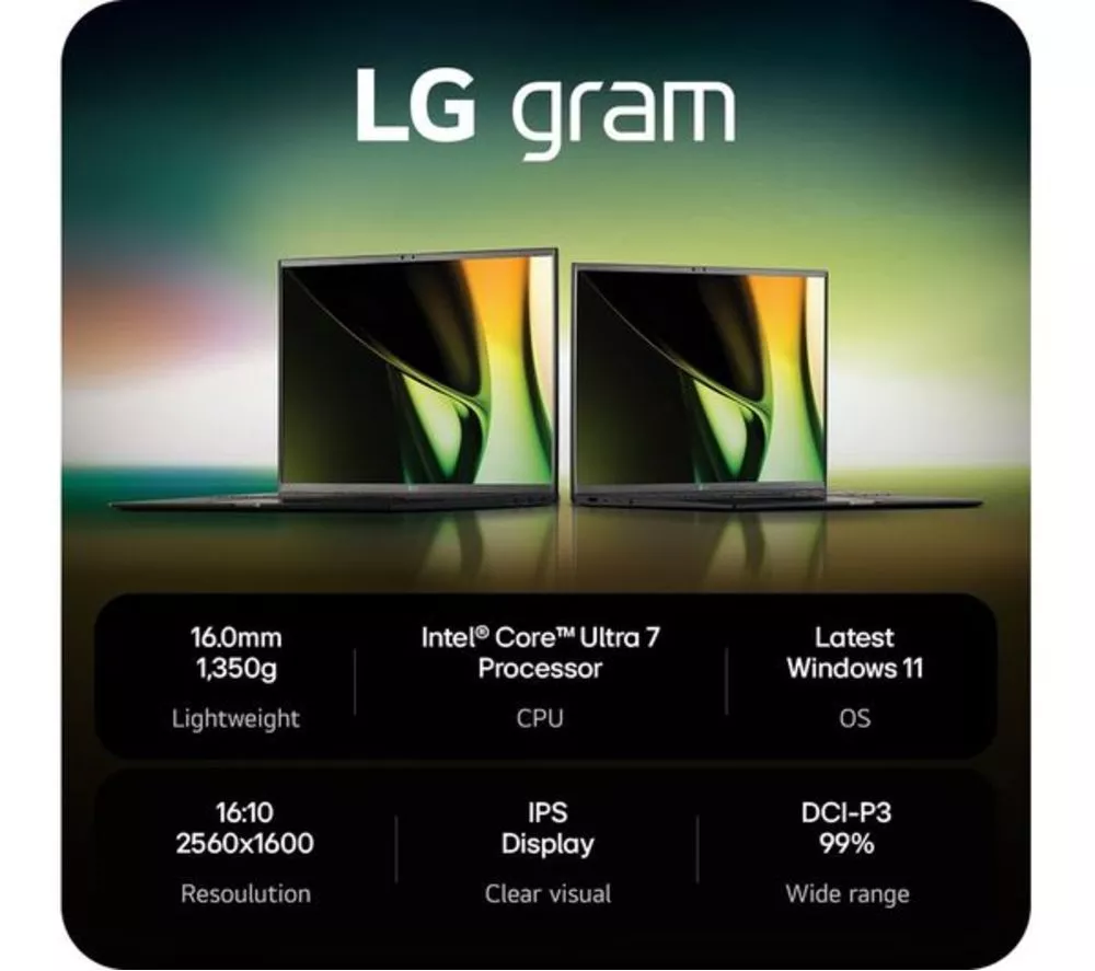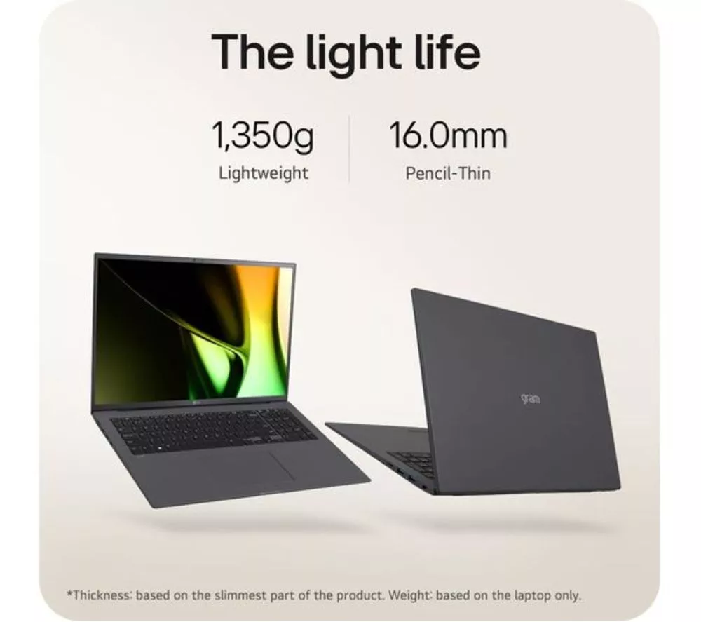 Technical specifications for LG gram 17 17Z90S-G.AD79A1 17″ Refurbished Laptop – Intel® Core™ Ultra 7, 1 TB SSD, Dark Grey (Very Good Condition)