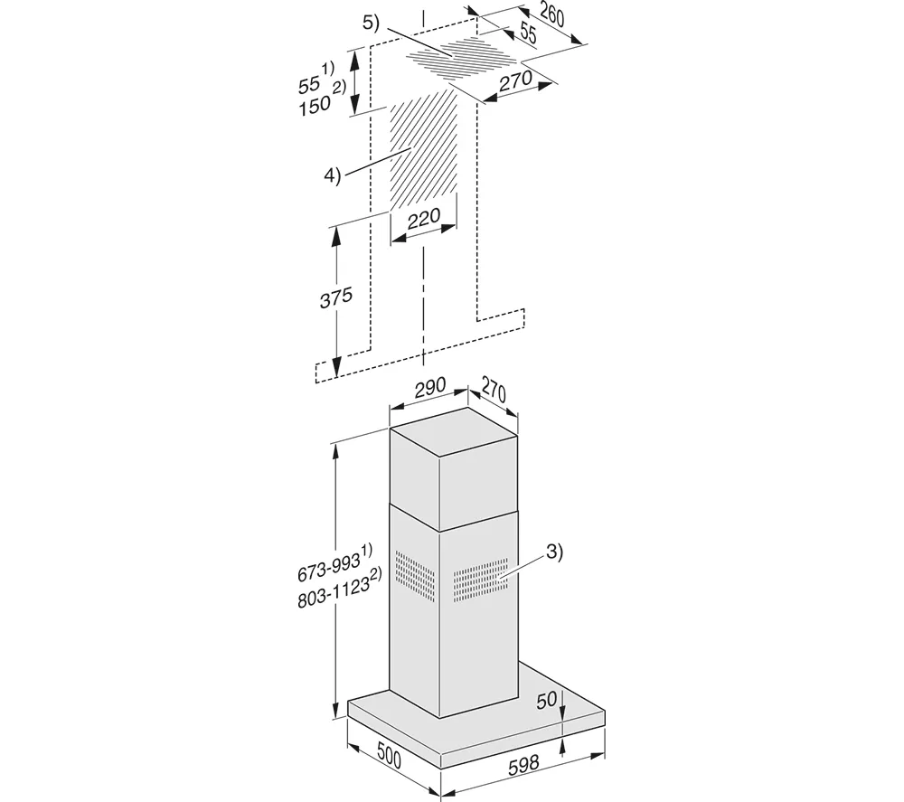 673 – 993 x 598 x 500 mm (H x W x D)