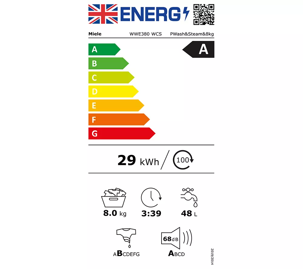Technical specifications for MIELE WWE380 WCS PWash&Steam WiFi-enabled 8 kg 1400 Spin Washing Machine – Lotus White