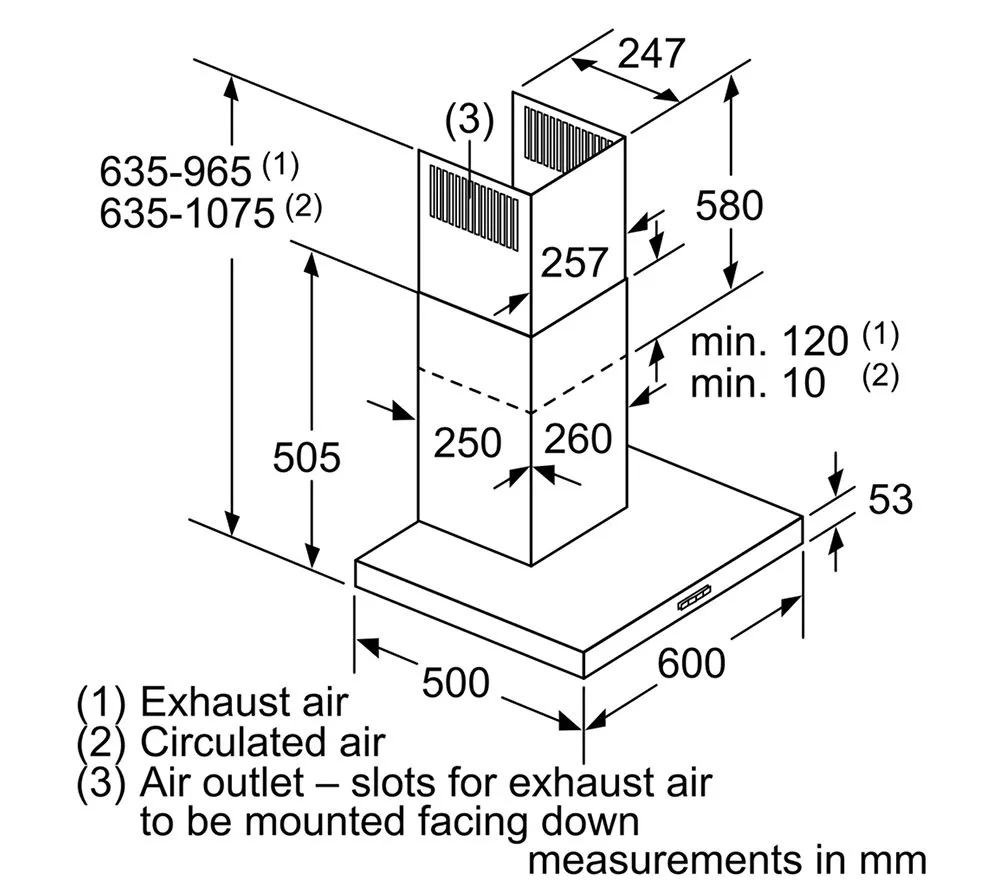 53 x 600 x 500 mm (H x W x D)