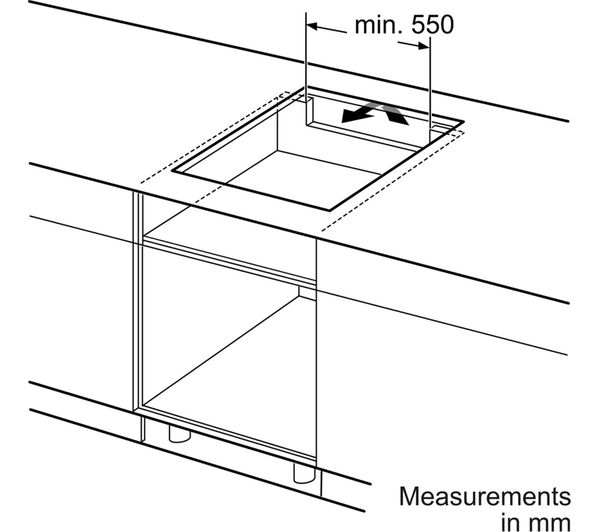 Minimum distance required / Minimum clearance above hob