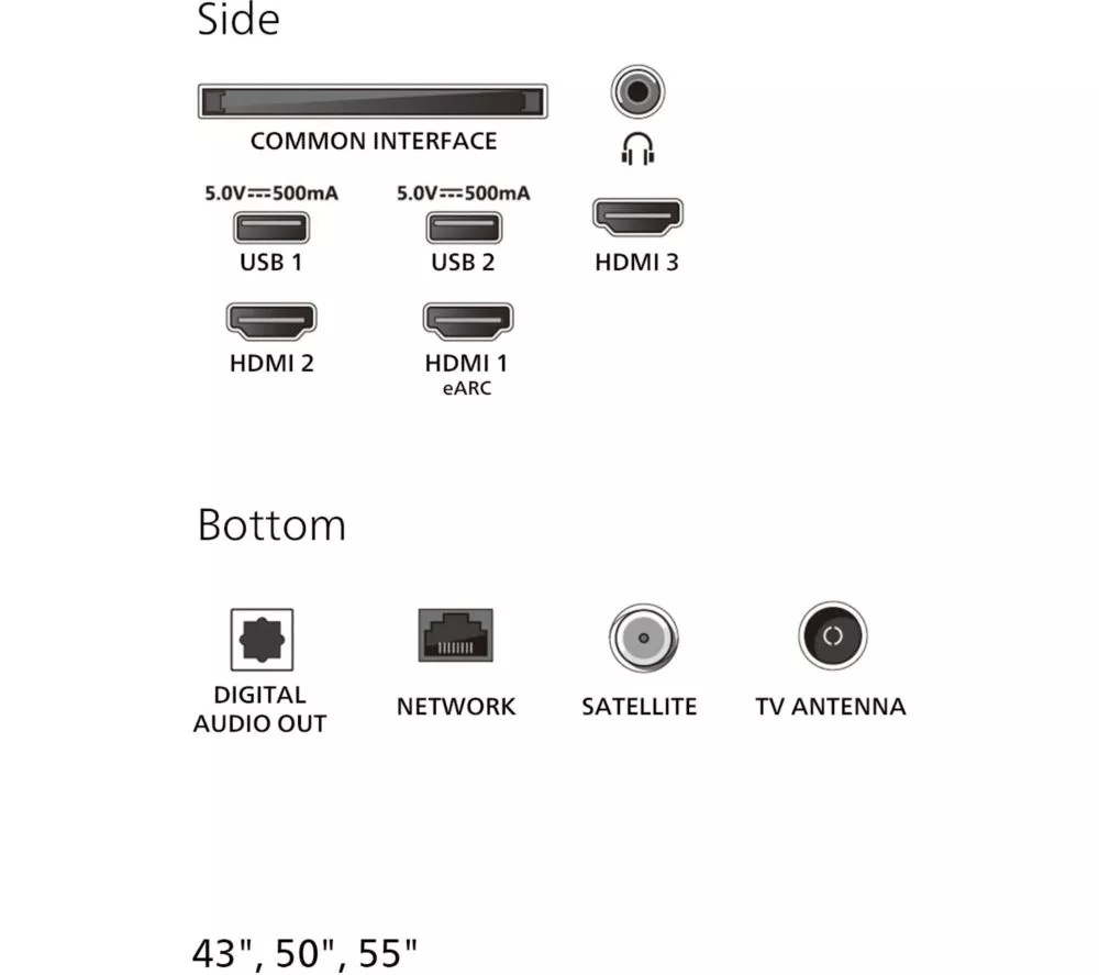 – TV with stand: 670 x 1111 x 262 mm (H x W x D)