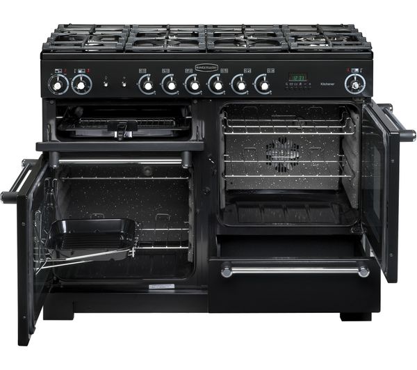 Tags: RANGEMASTER, RANGEMASTER Kitchener, RANGEMASTER Kitchener 110 cm Dual Fuel Range Cooker - Black & Chrome