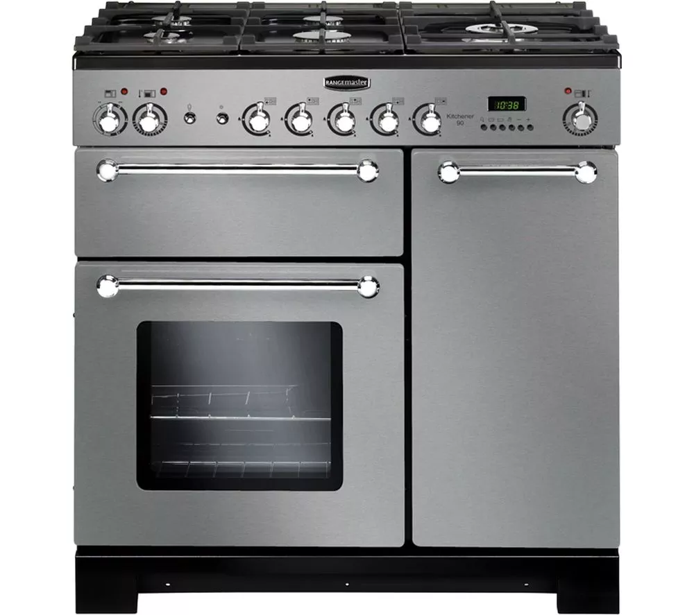 Etiquetas: RANGEMASTER, RANGEMASTER Kitchener 90, RANGEMASTER Kitchener 90 Dual Fuel Range Cooker - Stainless Steel & Chrome