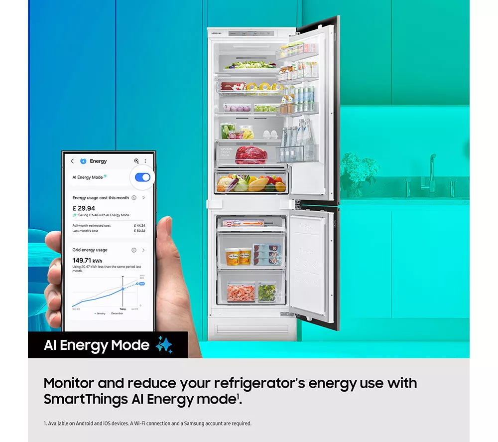 – Samsung Bespoke AI Series 7 SpaceMax BRB80F26ACS0EU Integrated Smart 70/30 Fridge Freezer – Sliding Hinge