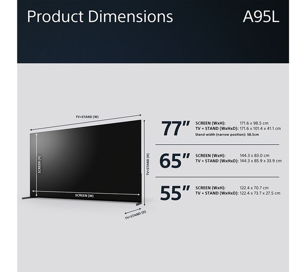 Technical specifications for SONY BRAVIA XR-55A95LU 55″ Smart 4K Ultra HD HDR OLED TV with Google TV & Assistant